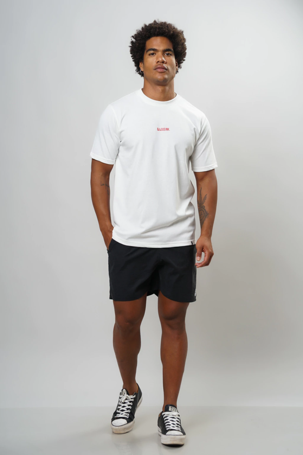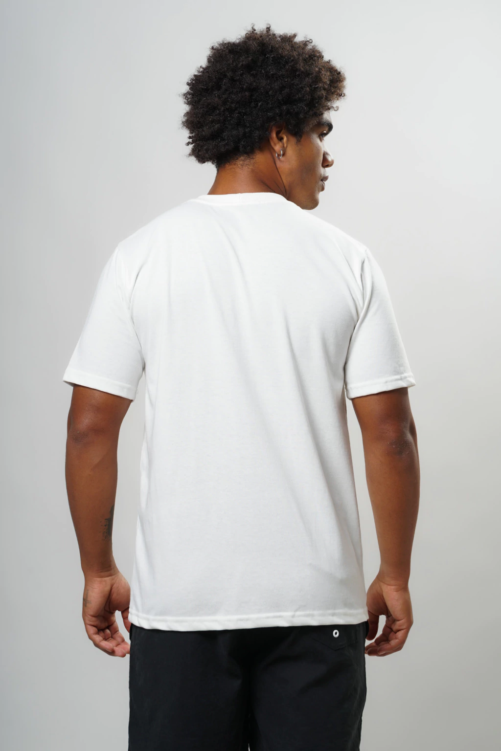 A estampa frontal é discreta e minimalista no centro do peito, mantendo o estilo clean e descomplicado.