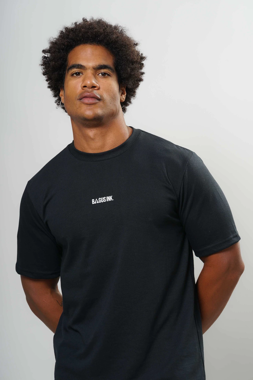 A estampa frontal é discreta e minimalista no centro do peito, mantendo o estilo clean e descomplicado.