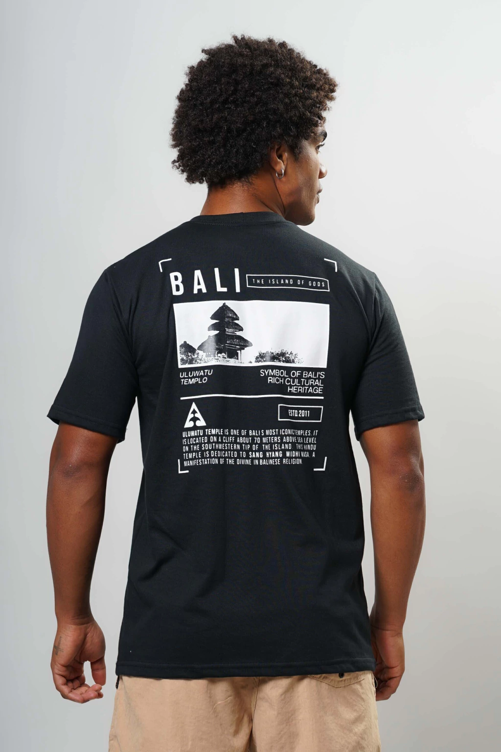 A estampa frontal é mais discreta e minimalista no centro do peito, mantendo o estilo clean e descomplicado. O grande destaque fica por conta da estampa nas costas, onde é reproduzida uma arte imponente e descritiva do Templo de Uluwatu, localizado na ilha de Bali, na Indonésia — um ícone ligado à cultura do surf e do espírito aventureiro.